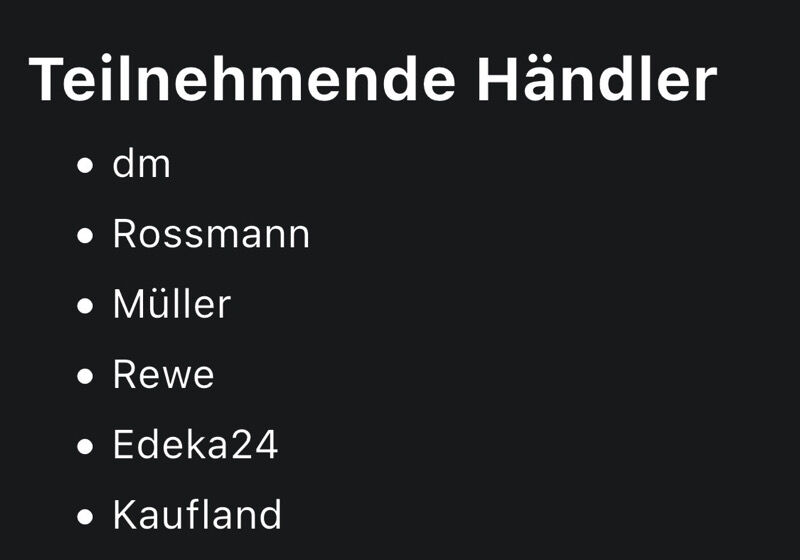 Ich habe in den Teilnahmebedingungen nirgends finden können, dass der Kauf der MundspĂŒlung nur bei diesen 6 aufgefĂŒhrten HĂ€ndlern akzeptiert wird. woher kommt diese Information?