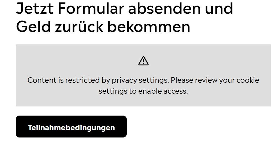 also das ist eine scheiĂ Aktion, egal welchen Browser ich nehme, ich komme nicht an das Formular bzw. die Meldung, das heute alles weg ist. Ich habe alle Cookies akzeptiert. Nun habe ich das gekauft und habe nicht mal die Chance das einzulösen.đż