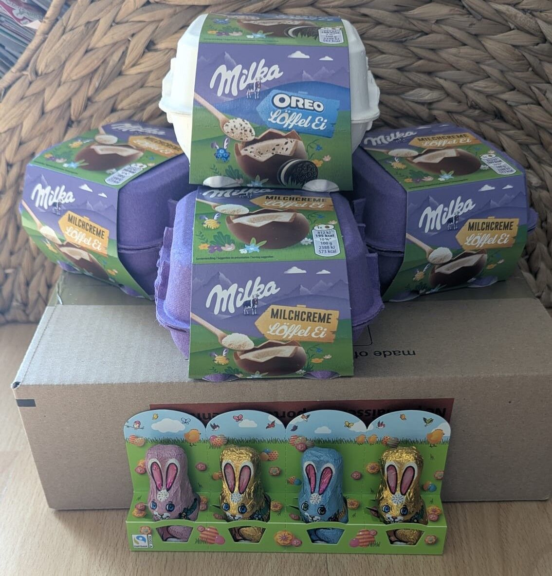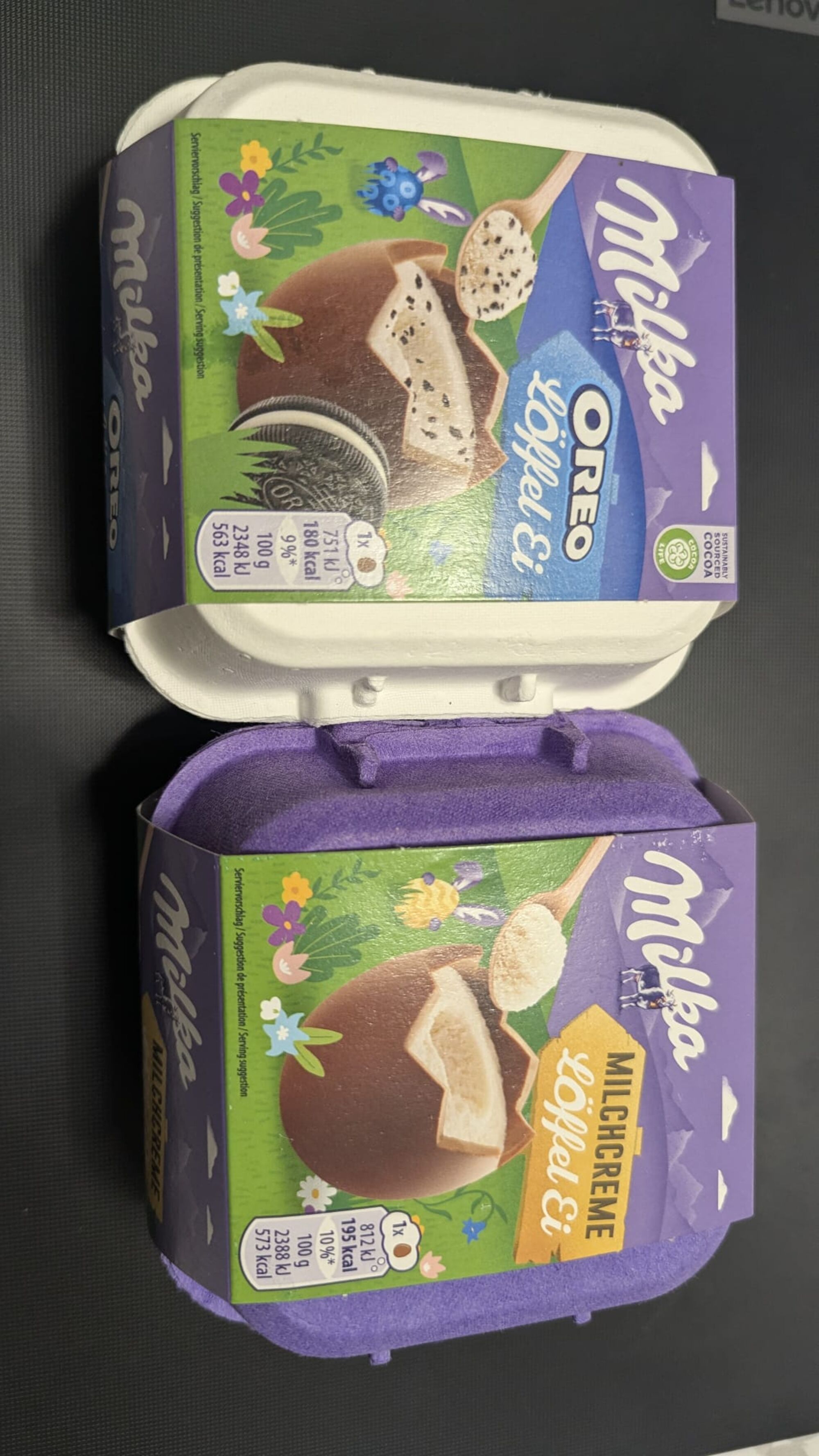 die Milka Eier gibt’s bei Norma da wo das Osterzeug steht. ganz unten sind die da 4 verschiedene Sorten 😜