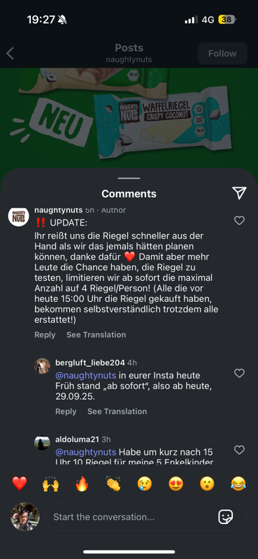Schade ich habe gerade due 4 riegel geholt, ich bringe es morgen alle zurĂŒck