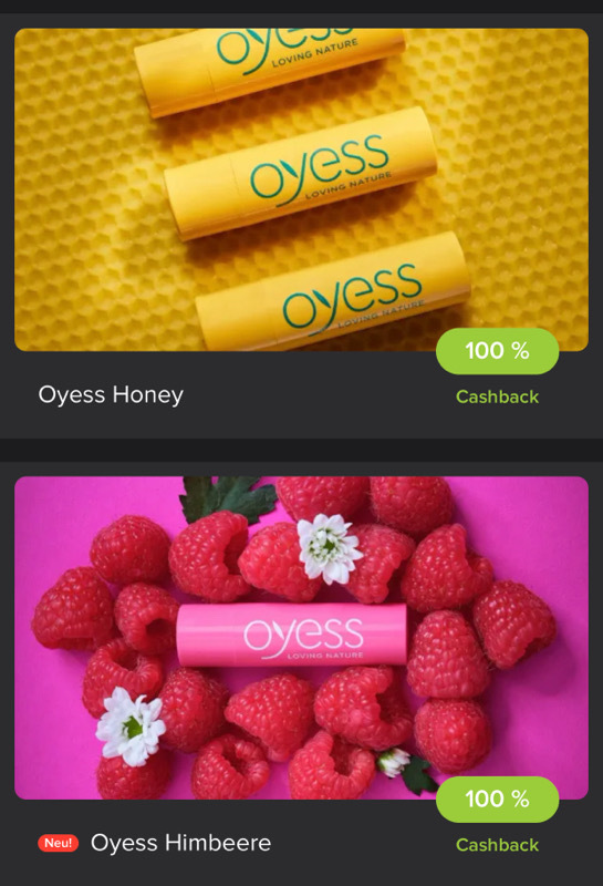 - 100% Cashback beim Kauf von OYESS Lippenpflege.