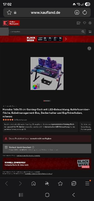 PREISFEHLER: Gaming Schreibtisch für 12,99€