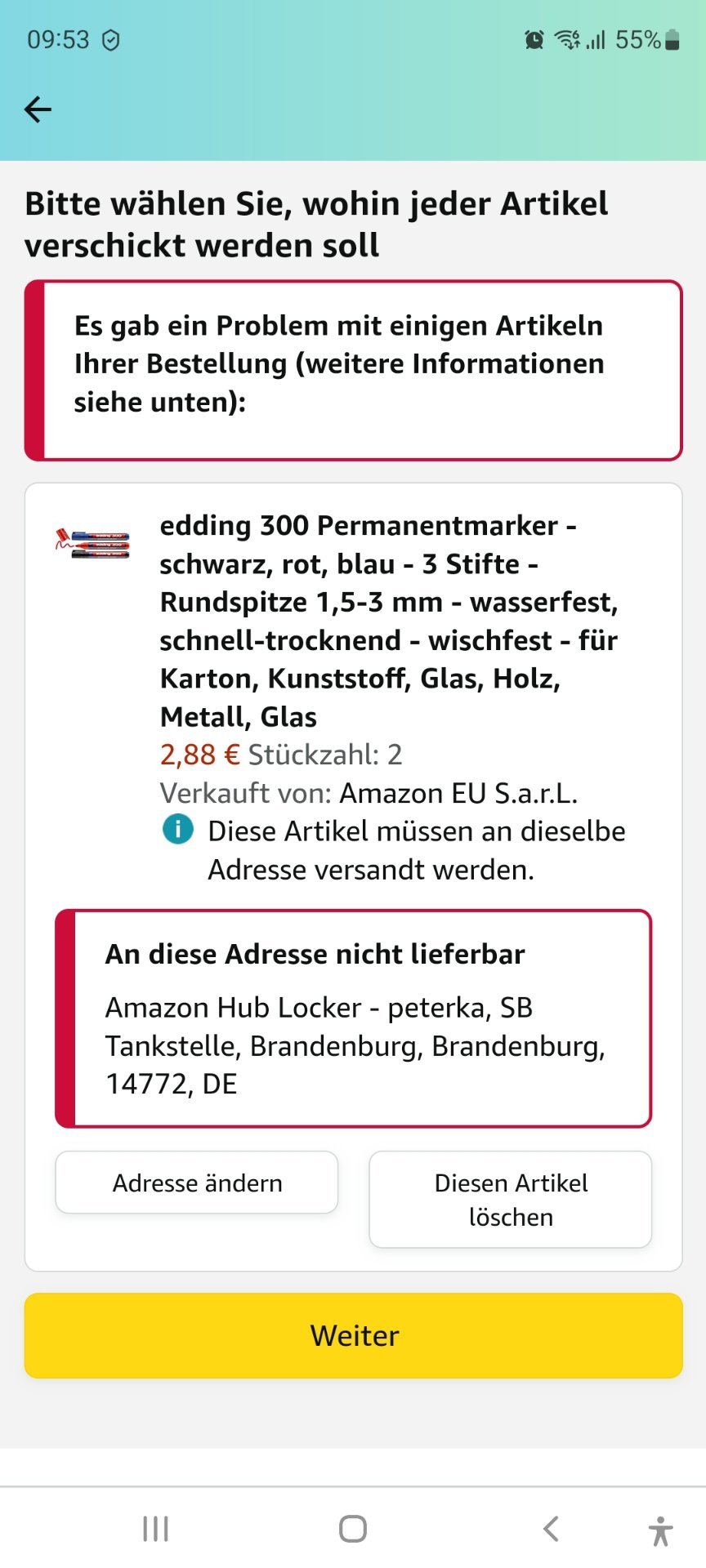 Wie zu sehen nicht an Amazon locker Station verschickbar
