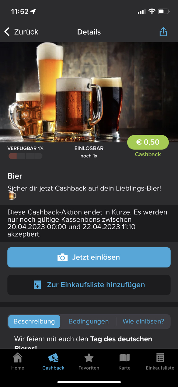 Bei Marktguru gibt jetzt es 0,50 € Cashback beim Kauf von BIER deiner Wahl. 🍻