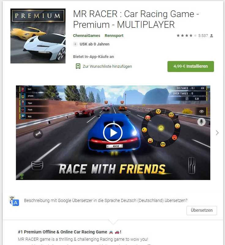 Im Play Store könnt ihr aktuell das beliebte Rennspiel gratis statt für 4,99 Euro erhalten. Messe dich im Wettkampf mit Freunden oder rase alleine. Schneller als die Polizei erlaubt ;:)