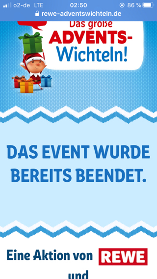 - Im Aktionszeitraum (14.10.-20.11.2022) auf die Rewe-Adventswichteln-Gewinnspielseite gehen.