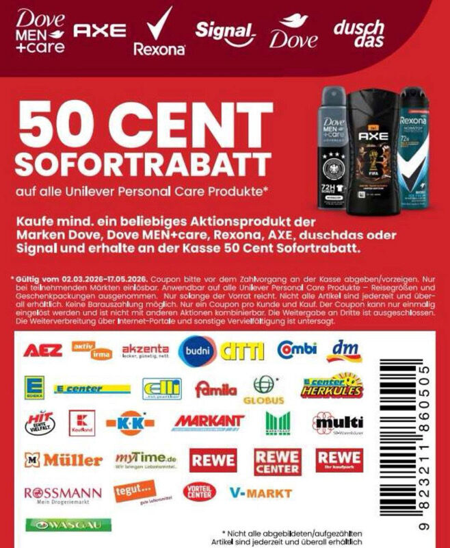 Rossmann ab 27.04.: duschdas & Axe mit Coupons stark reduziert – Duschdas ab 0,44 €