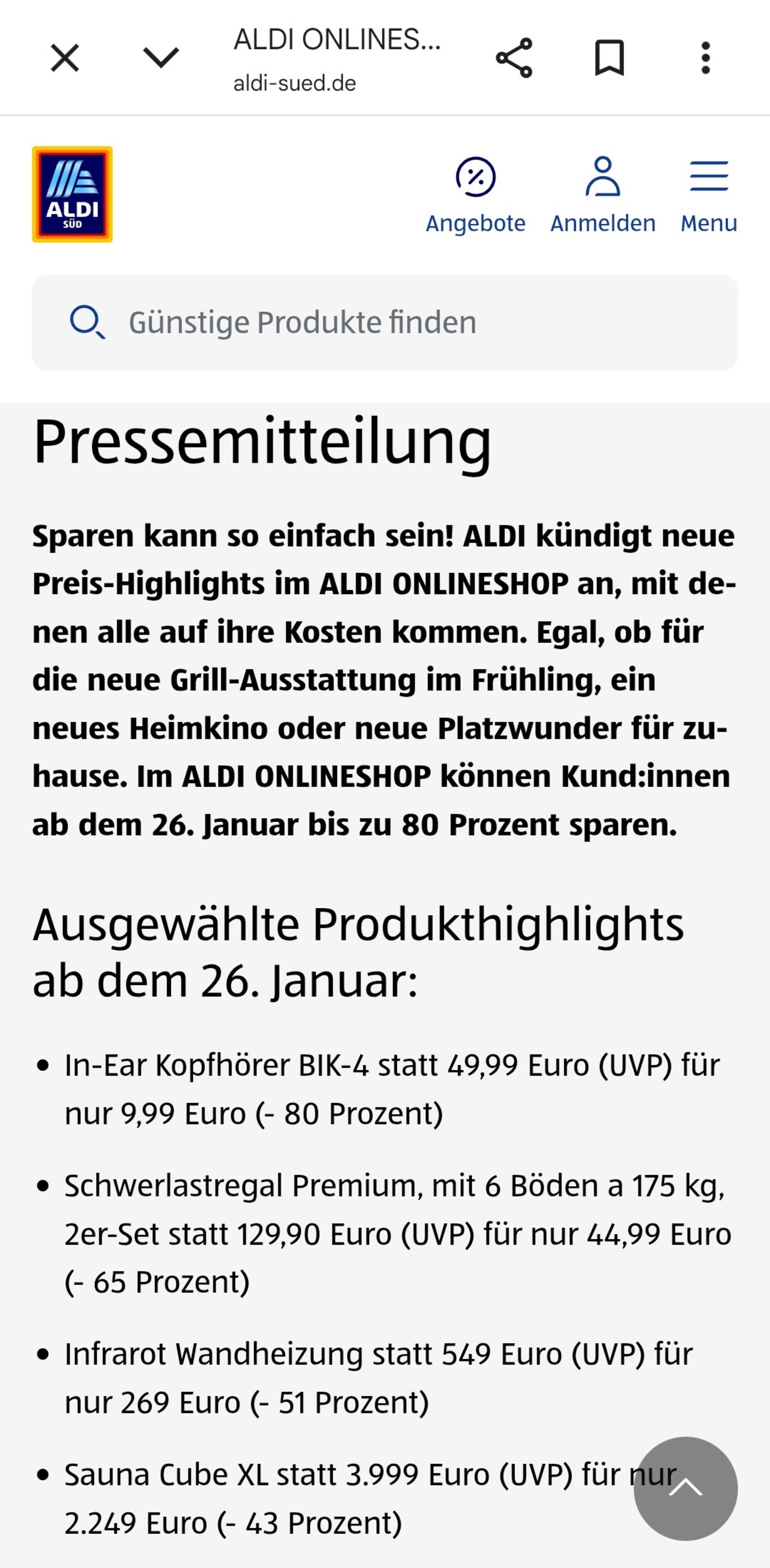 Hmmm, wie kommt das? Kann es sein, daß es nur Aldi Nord betrifft? Hier ist aktuell Aldi Süd Onlineshop Seite.