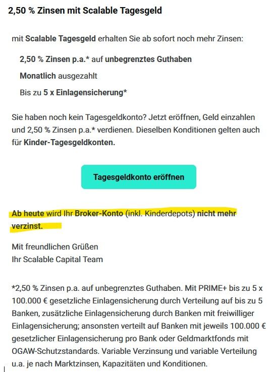 Scalable Capital: Tagesgeld mit aktuell 2,5 % Zinsen (Neu- und Bestandskunden)