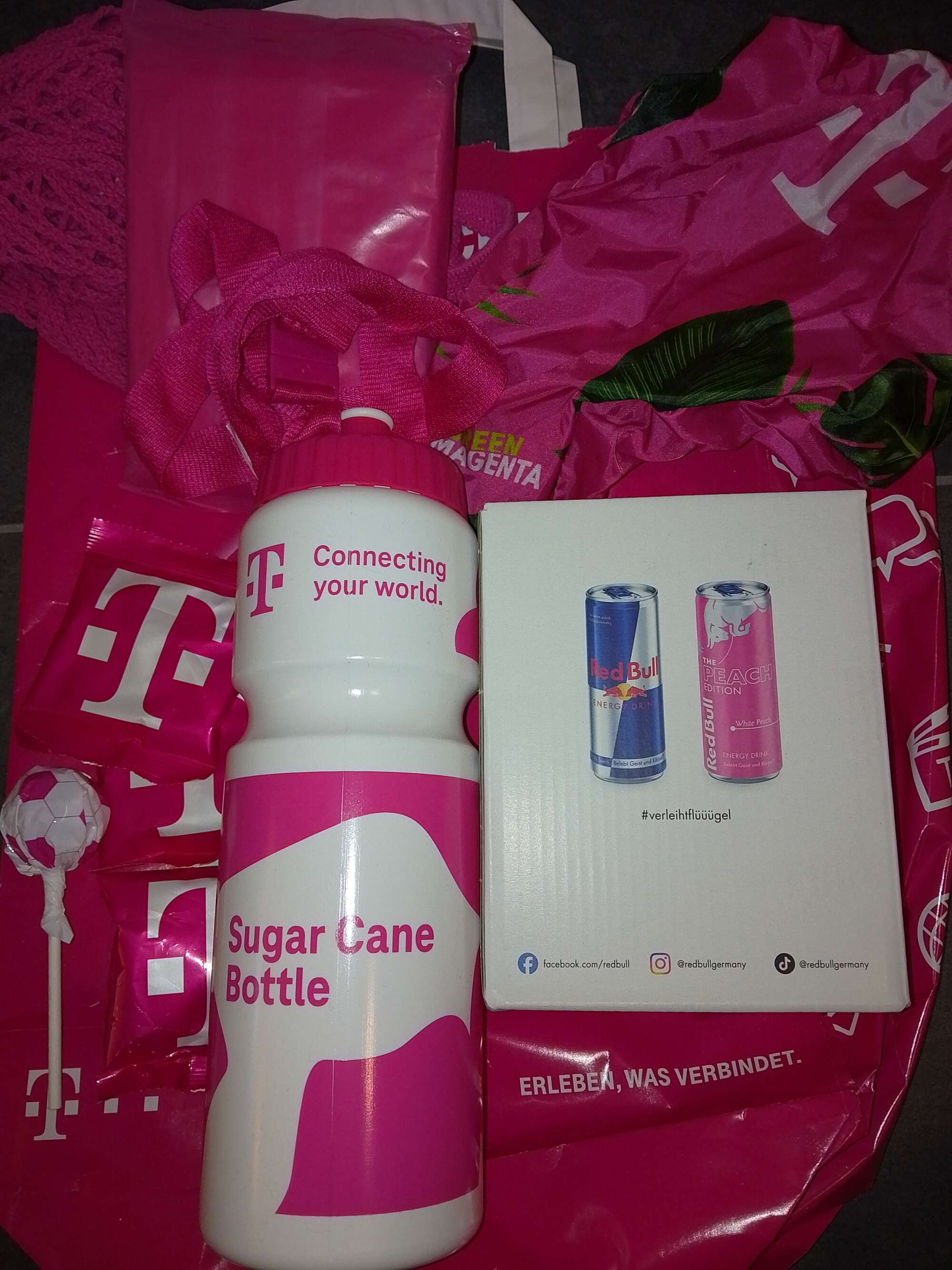 Also neben den RedBull Dosen, so eine Telekom TĂźte.
