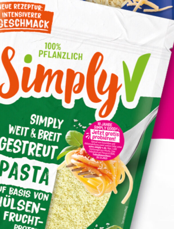SimplyV gratis testen: Geld zurĂźck auf SimplyV Gerieben fĂźr Pizza, Pasta & Gratin â ab 01.10.2025 đ§