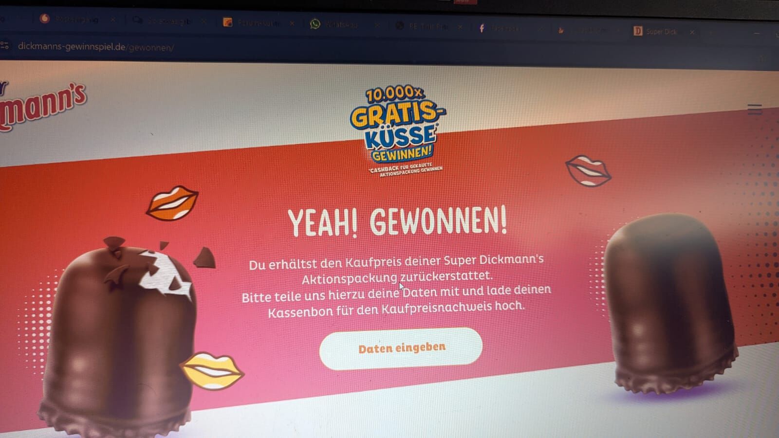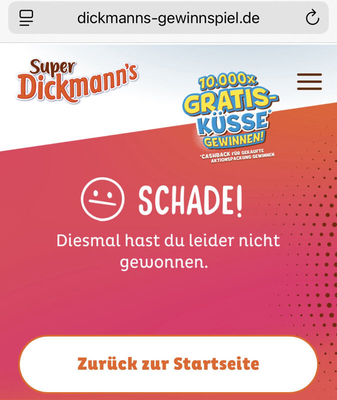 @GustavGuns: Die Aktionspackung von Super Dickmann’s erkennst du in der Regel an einem Hinweis auf das Gewinnspiel direkt auf der Verpackung. Achte auf einen Aufdruck oder Sticker, der auf die Möglichkeit hinweist, den Kaufpreis zurückerstattet zu bekommen.