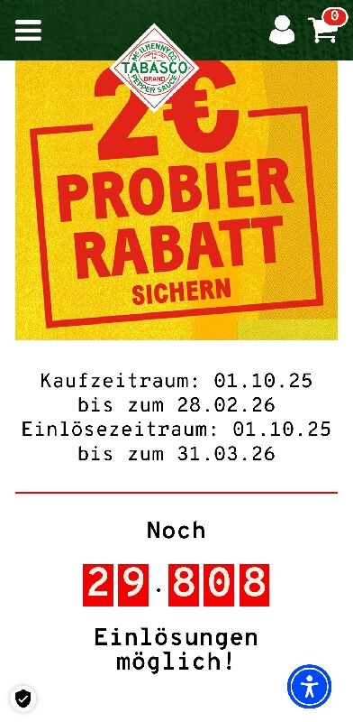 3. Hochladen & registrieren: Auf tabasco.de/ probierrabatt eintragen – Name, E-Mail, Bankverbindung – und Foto hochladen. Deadline: 31.03.26.