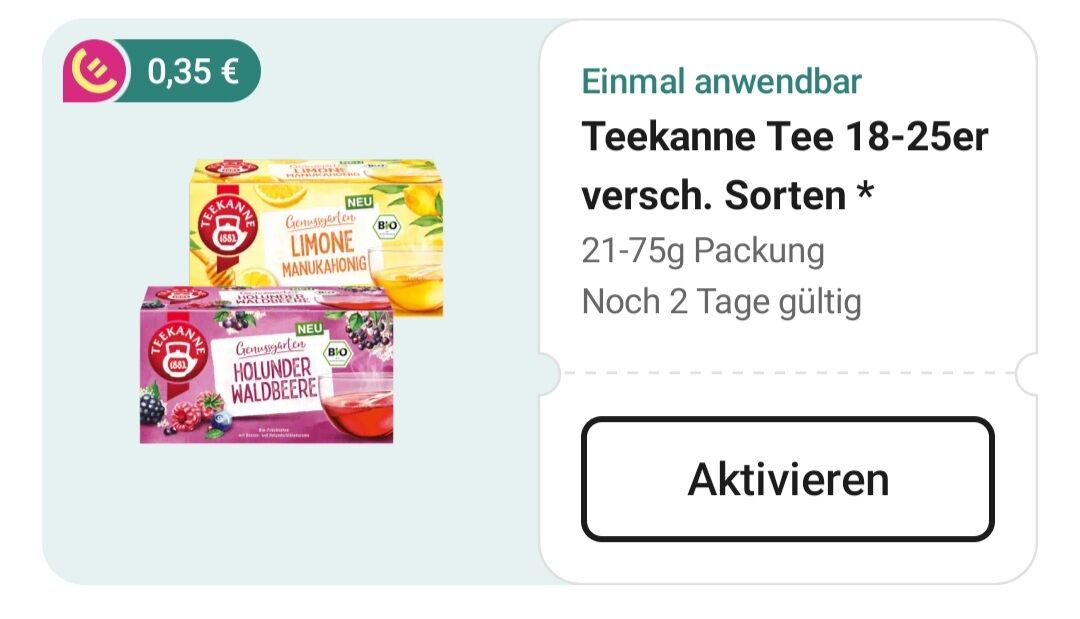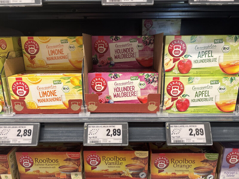 Bei unseren 2 Rewe werden 7 Sorten Teekanne Bio