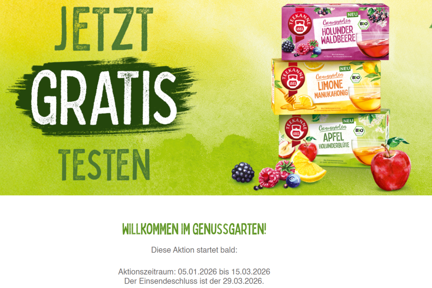 Teekanne Bio Genussgarten gratis testen â ab 05.01.2026 đ”