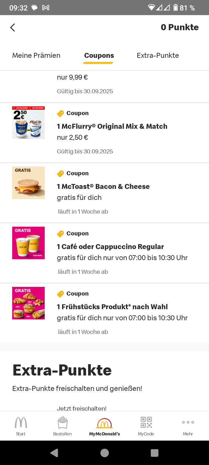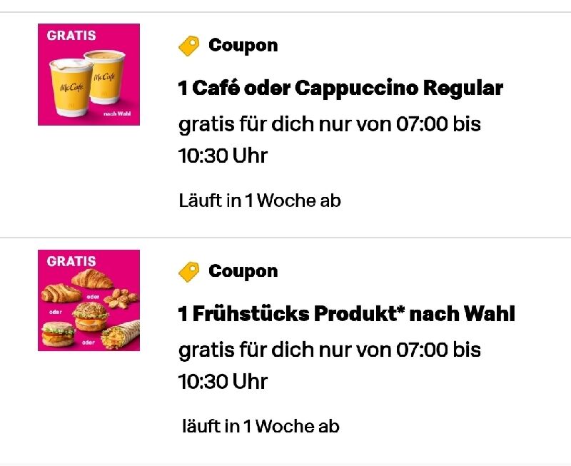 Voraussetzung für die Aktivierung der Codes ist die MyMcDonald’s App! Einlösbar nur während der Frühstückzeiten bei McDonalds.