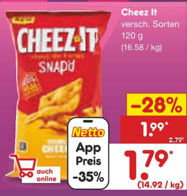 Ihr seid schon mega gespannt, Cheez-It gratis zu probieren? Dann merkt euch schon jetzt den 01.09.2025 rot im Kalender vor! đ Die Aktion gilt fĂŒr den Kauf einer Cheez-It 120g Aktionspackung zwischen dem 01.09.2025 und 30.06.2026.