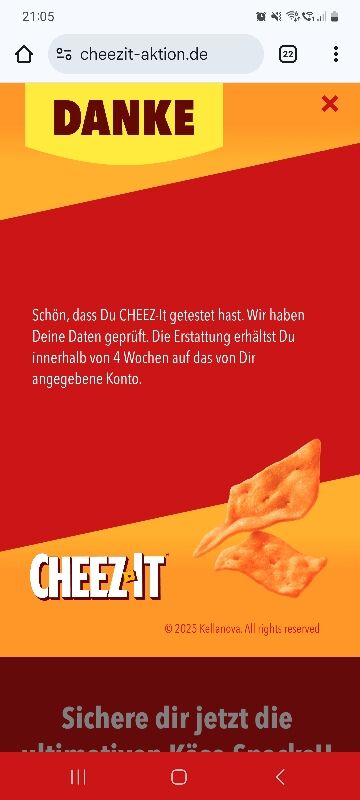 Bon mit Cheez-It Aktionspackung aufbewahren und ab dem 01.09.2025 hier einlösen!“ Bin mal neugierig, ob der eingelöst wird. Hört sich doch so an, als ob man schon kaufen könnte.
