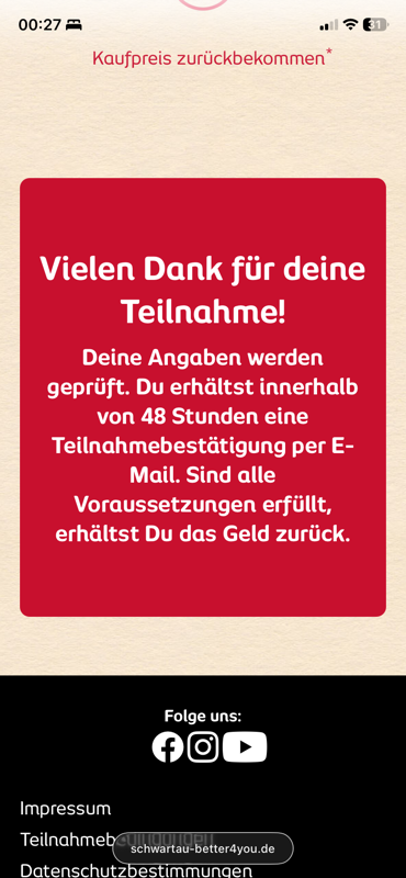 Bei jeder Schwartau – Aktion das gleiche: Mutter und Tochter mit gleichem Vornamen, verschiedenen E-Mailadressen, verschiedenen Iban werden grundlos abgelehnt! So ein Theater gibts nur bei Schwartau!