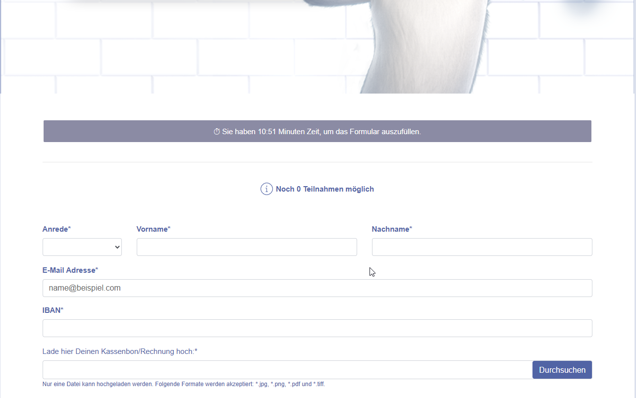 - Ladet den Bon auf der Aktionsseite wc-ente-aktion.com hoch.