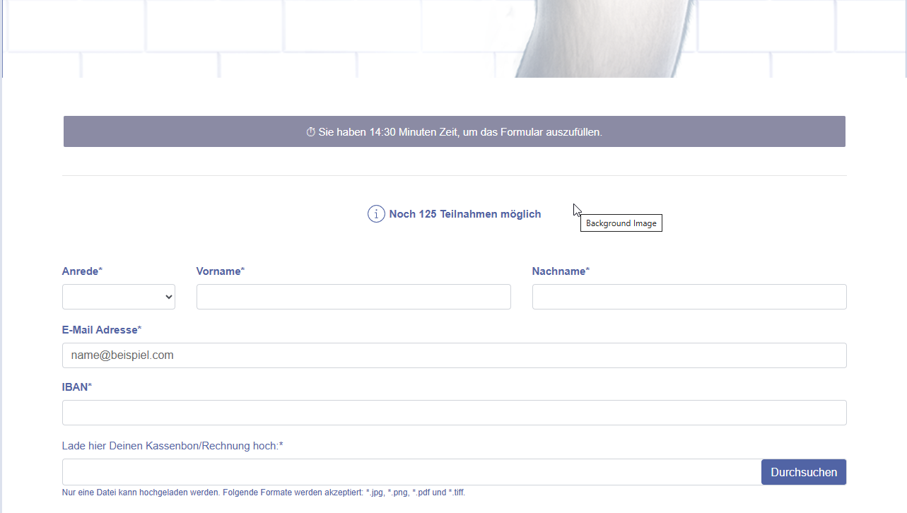 - Maximal 1 Teilnahme pro Haushalt und IBAN