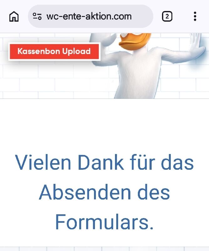 - Ladet den Bon auf der Aktionsseite wc-ente-aktion.com hoch.