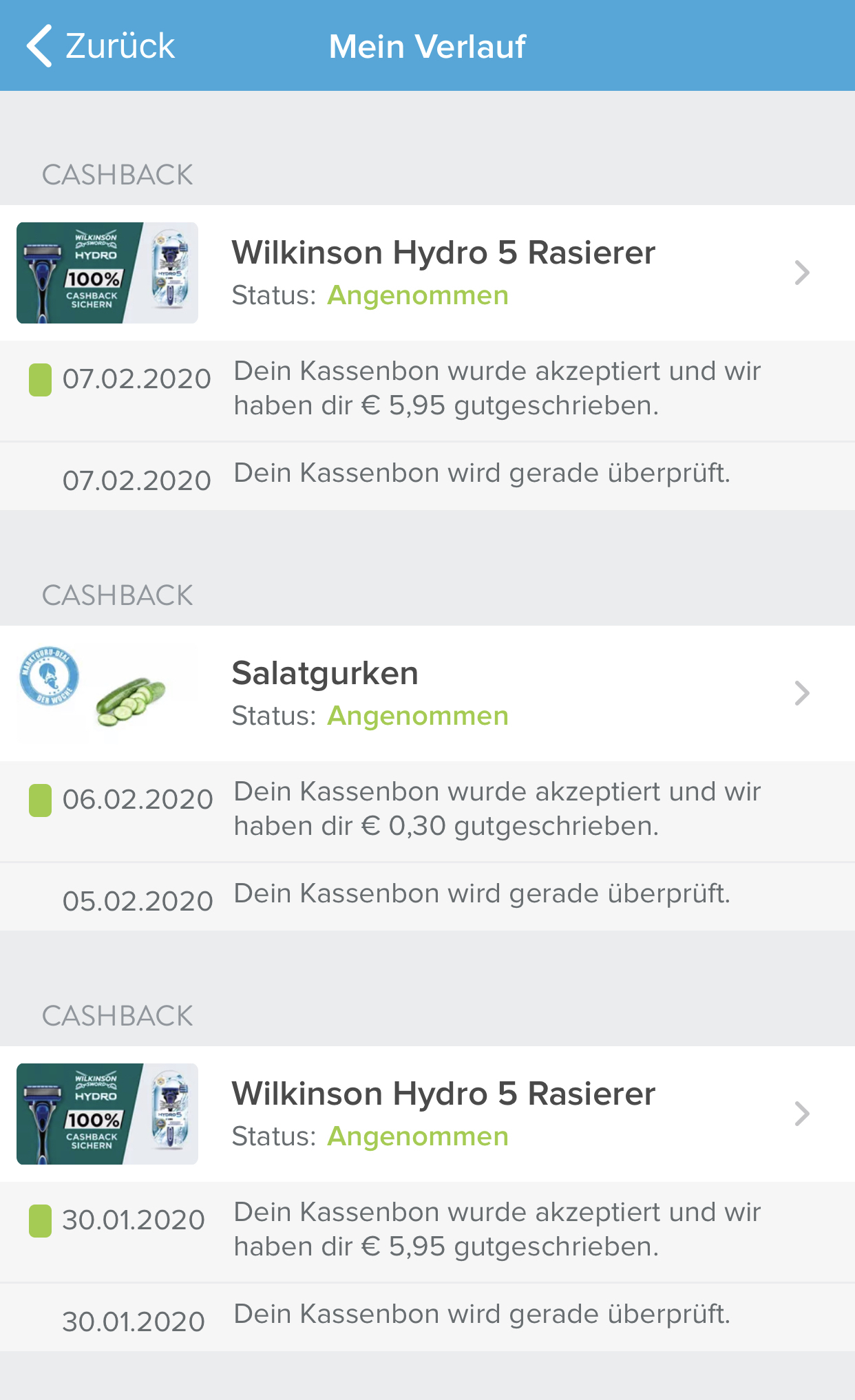 Waren aber für Rasierer bei Marktguru die einzigen Deals, an die ich mich jetzt erinnern kann, seit ich dabei bin. Aber dazu kommen ja noch verschiedene Cashback-Aktionen vom Hersteller selbst. Also das läuft in letzter Zeit eigentlich ganz gut 😉