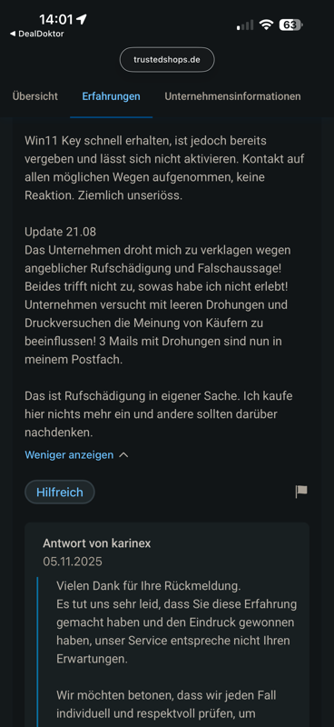 Hier handelt es sich garantier mit um volumenlizenzen aus der Industrie wenn man sich die Bewertungen auf Trustee Shops so ansieht. mir is mt das fĂŒr den Preis (der schon stutzig machen sollte) zu heikel. Hatte schon mal sowas. Dann musste ich innerhalb 3 Tagen einen neuen Key eingeben und ĂŒbers Wochenende nix bekommen. Woche drauf war der Rechner schwarz. Werd ich nie wieder machen sowas. Gute seriöse Ware kostet dementsprechend