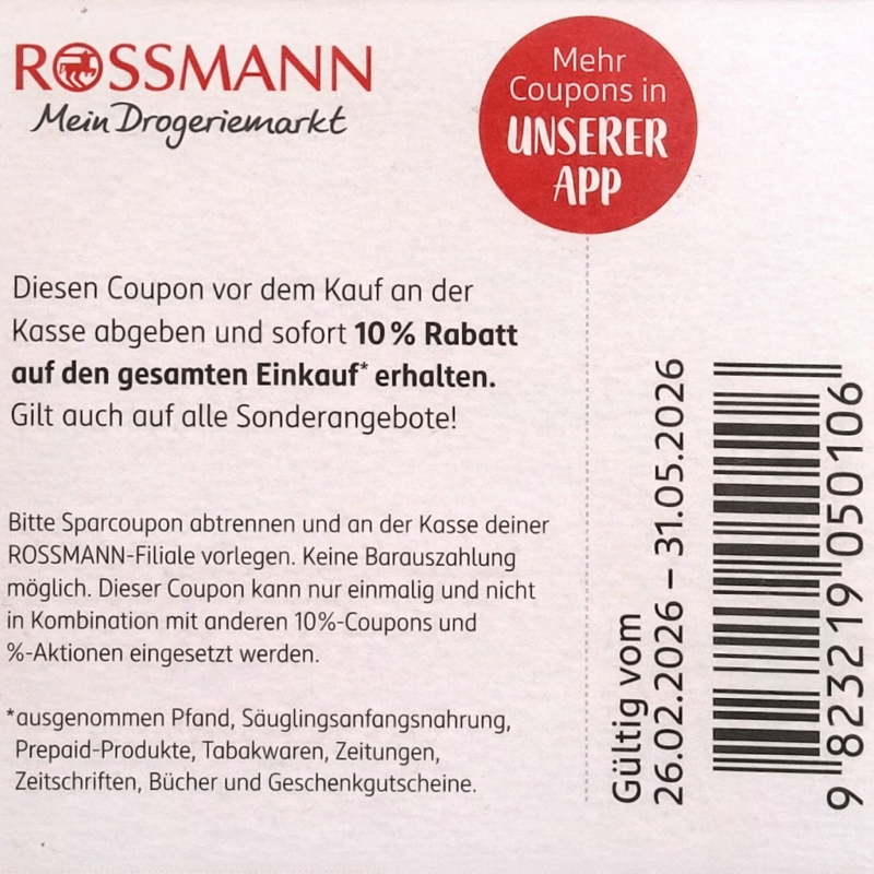 10% Rabattcoupon auf den gesamten Einkauf bei Rossmann