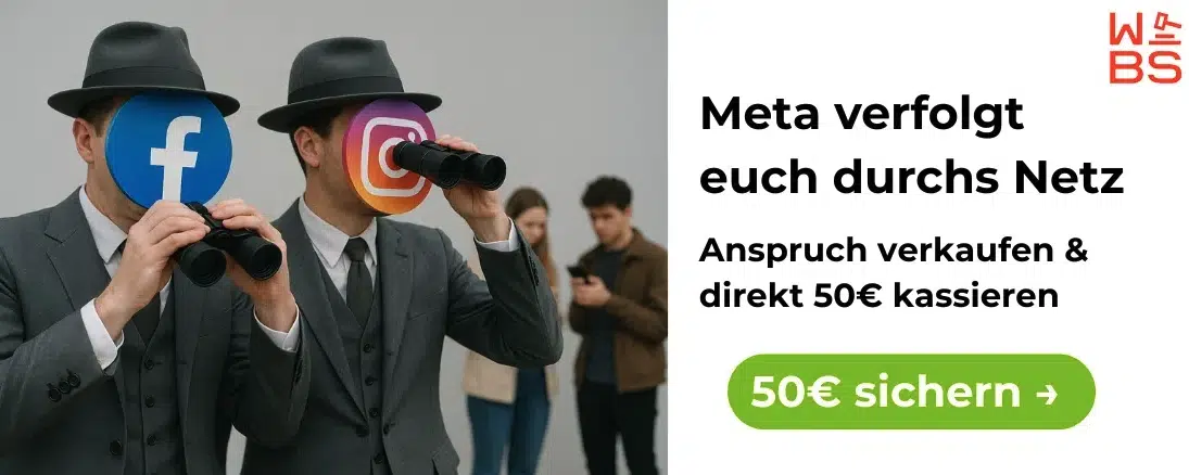 Facebook und Instagram spionieren, ihr kassiert 🧑⚖️ Anspruch abtreten und 50€ sichern bei ReClaim / WBS