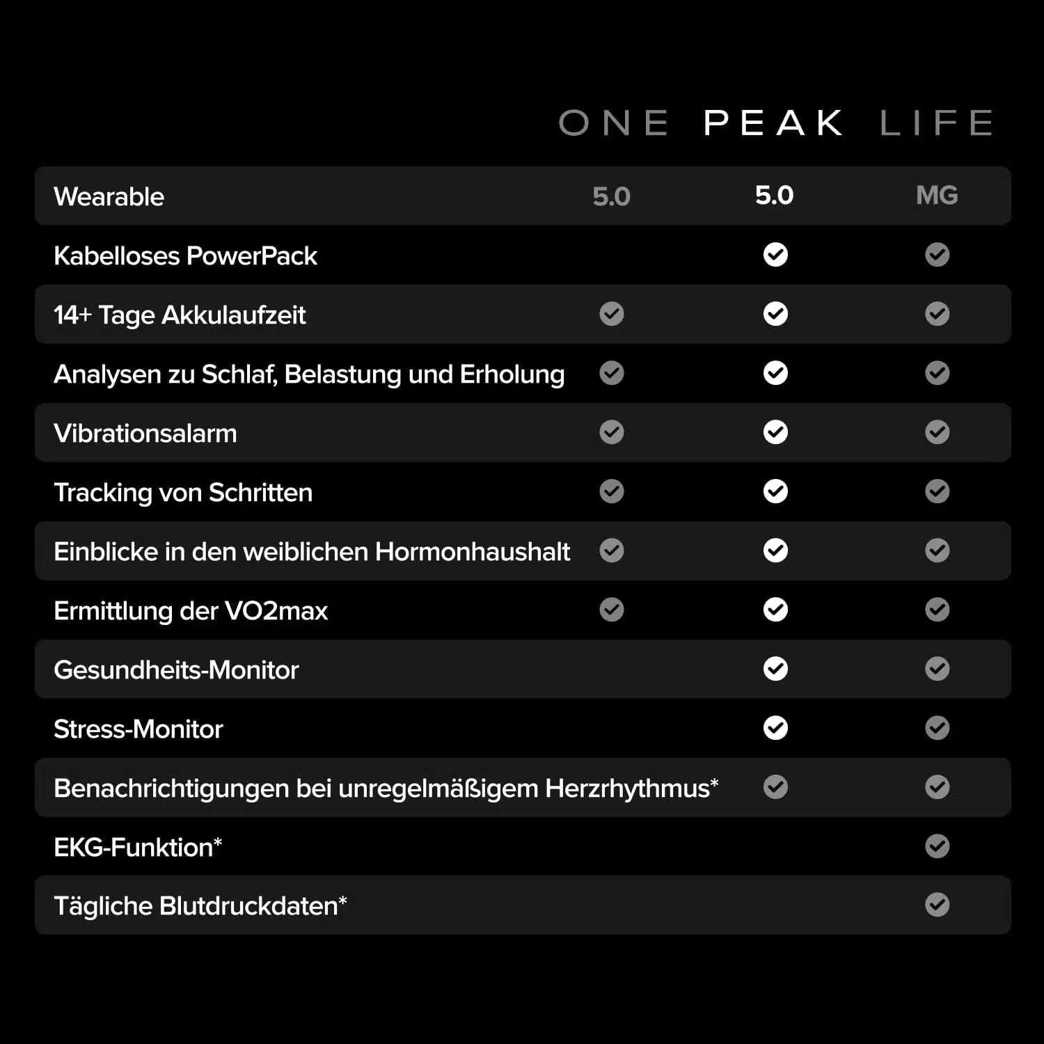 - neue Generation optischer Herzsensoren für besonders genaue Messungen, auch bei hoher Intensität