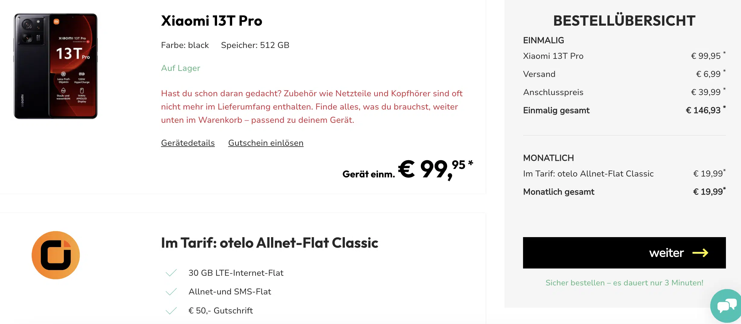 ⭐️ Xiaomi 13T Pro (512GB) für 99,95€ + 30GB LTE Vodafone Allnet für 19,99€/Monat + 50€ Wechselbonus (otelo Allnet-Flat Classic)