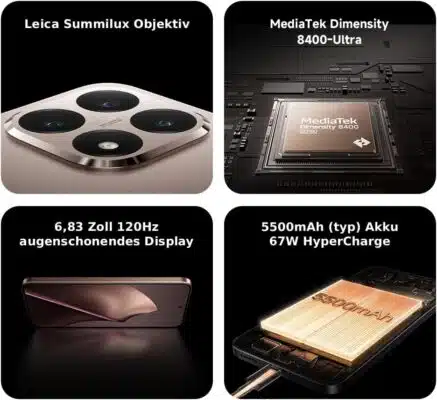 - Prozessor: MediaTek Dimensity 8400-Ultra (4nm Fertigung)