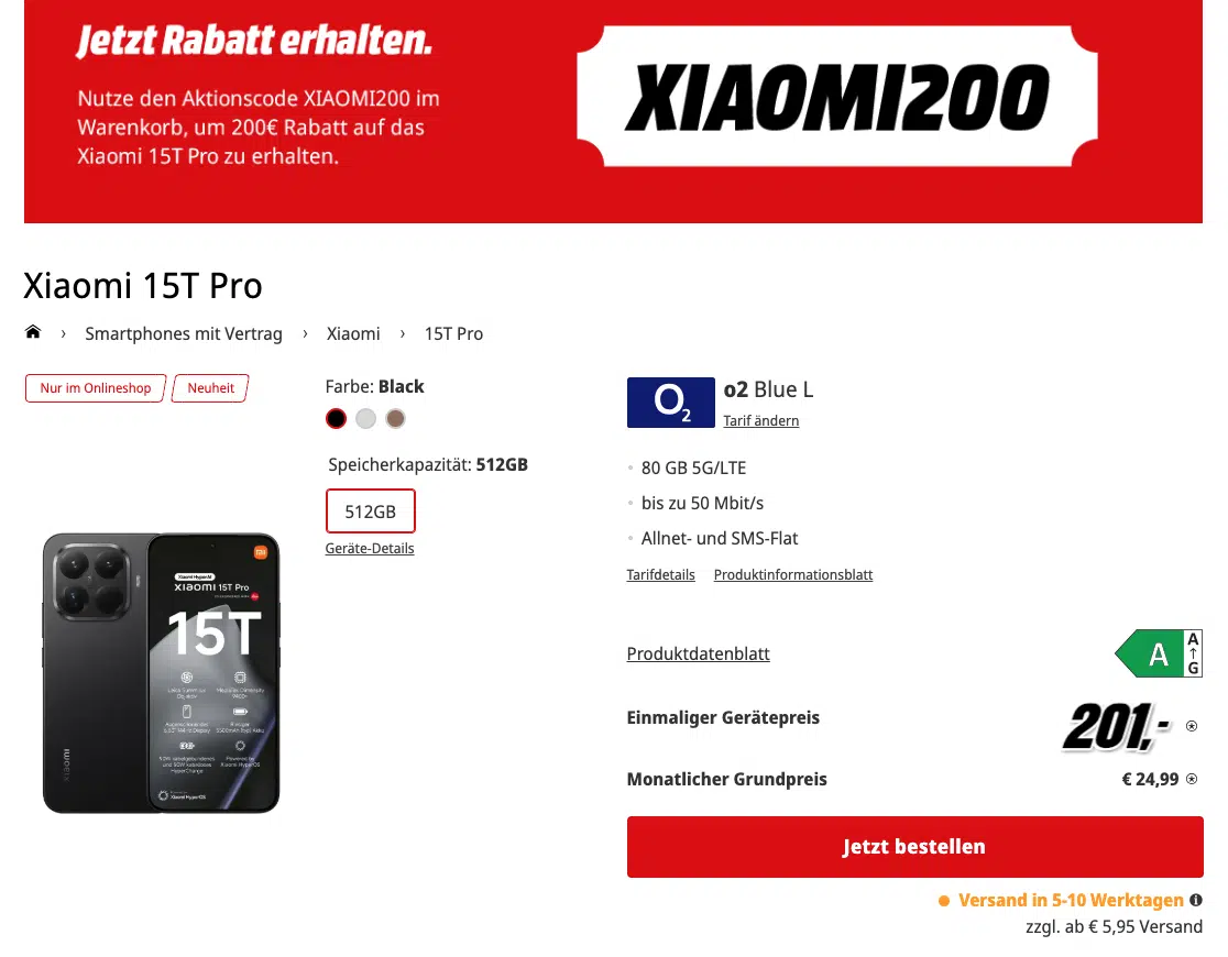 Eine Handy-Neuheit mit fettem Datenvolumen (80GB), einer wirklichen netten Zugabe gibt es gerade bei MediaMarkt, Àmlich das Xiaomi 15T Pro mit satten 512GB Speicher.