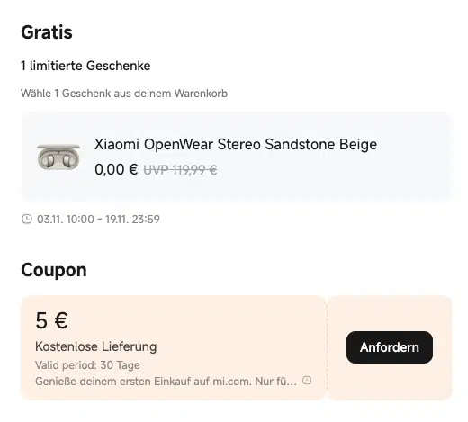 - Freebie: Xiaomi OpenWear Stereo (Wert ~150€) kostenlos dazu