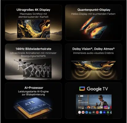 - XIAOMI TV MAX 85 2025 (QLED, 144Hz, Google TV) für 949€