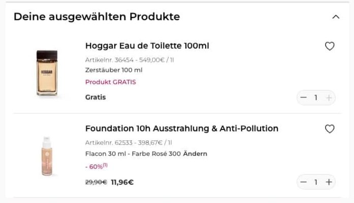Stöbert mal durch und sucht euch was (Teures) aus, denn das erste Produkt, das ihr in euren Warenkorb legt, ist kostenlos – egal wie hoch der Preis auffällt. Ihr müsst nur den Mindestbestellwert von 20€ erreichen. Also zuerst den teuren Artikel in den Warenkorb legen 🤭.