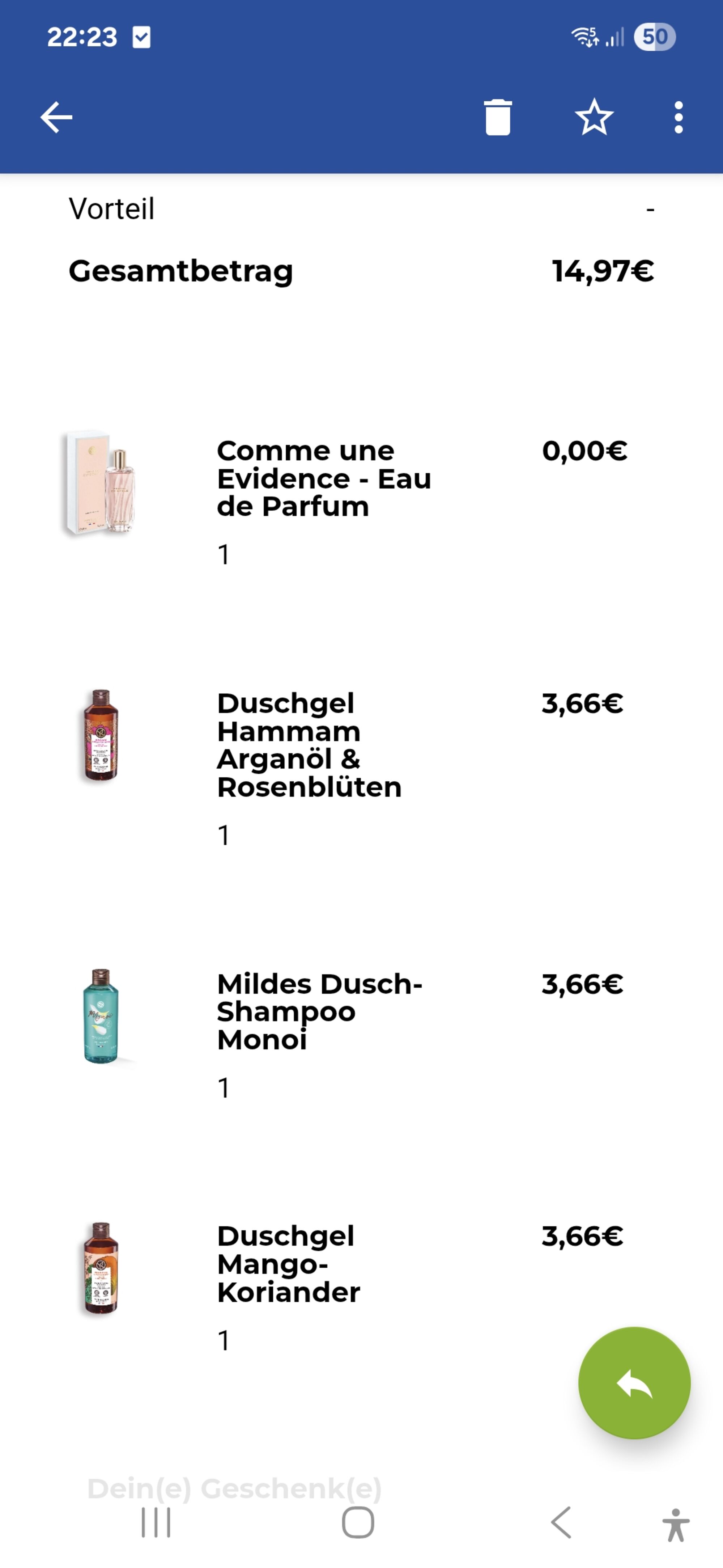 hat super funktioniert, habe zusätzlich das Duschgel-Angebot 3 für 10,99€ (Einzelpreis 5,99) wahrgenommen.